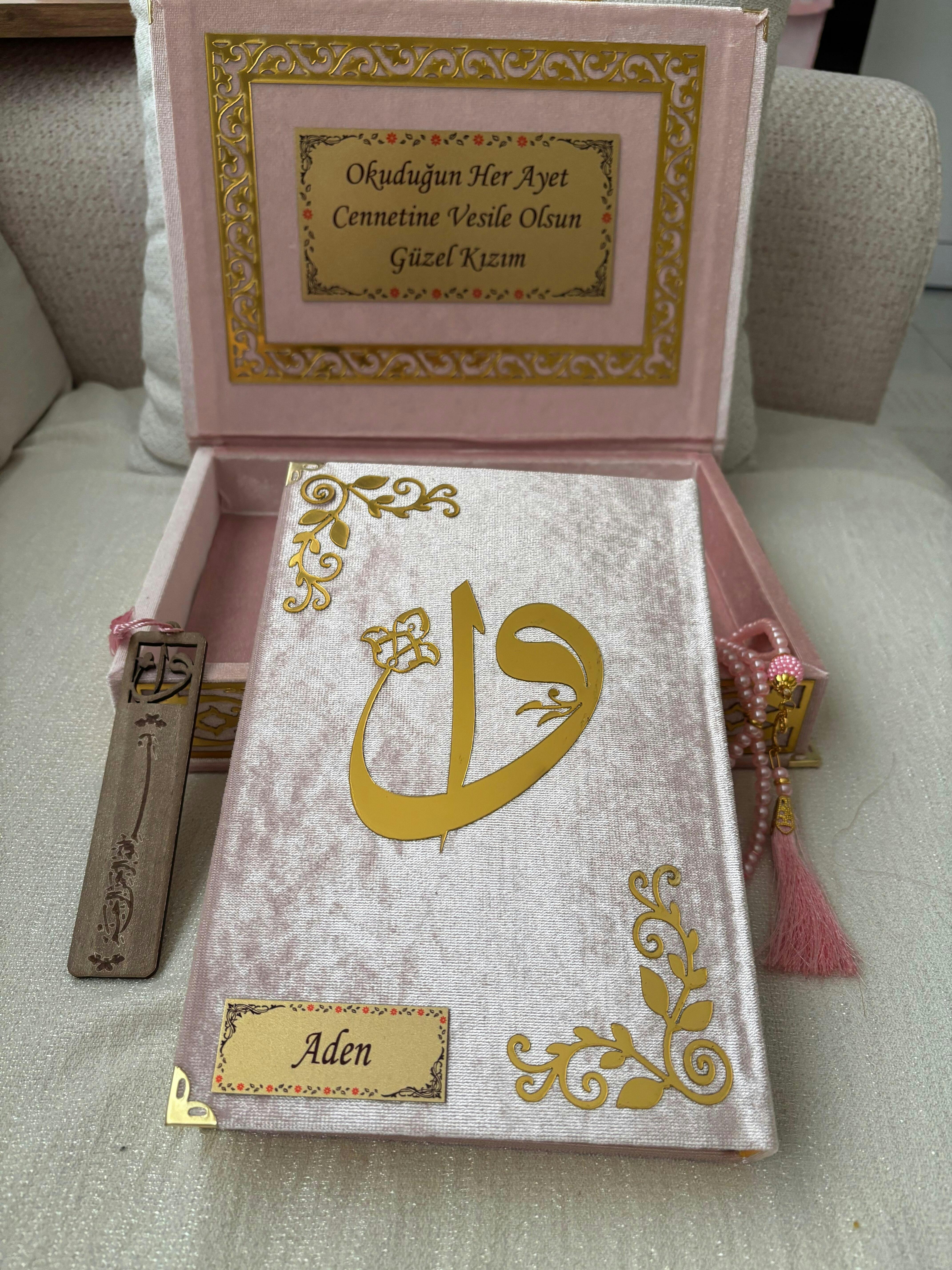 Kadife Kutulu Pembe Gold Süsleme Kur'an-ı Kerim Ürün Bilgisi;